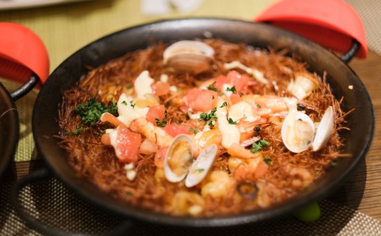 お米ではなくパスタで作られたパエリア「フィデワ」がパリパリで美味しい!