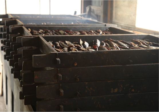 「手火山式」はカツオを燻製させてつくるかつお節の製法で、その歴史は350年以上。日本で一番歴史のある製法です。一本釣りした“生のカツオ”を、半年かけて熟成させるには熟練の技術が必要なため、当時のまま生産を続けているのは御前崎市の「マルミツ鰹節店」だけなのだそう!