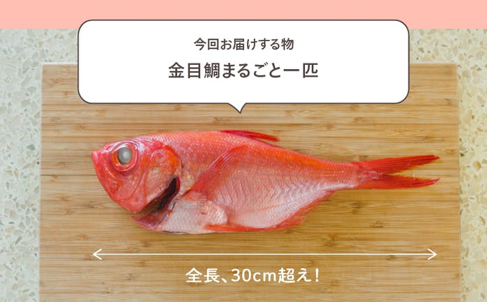 今回は、約30cmの静岡県「地金目鯛(ジキンメ)」をまるまる1尾お届けします!