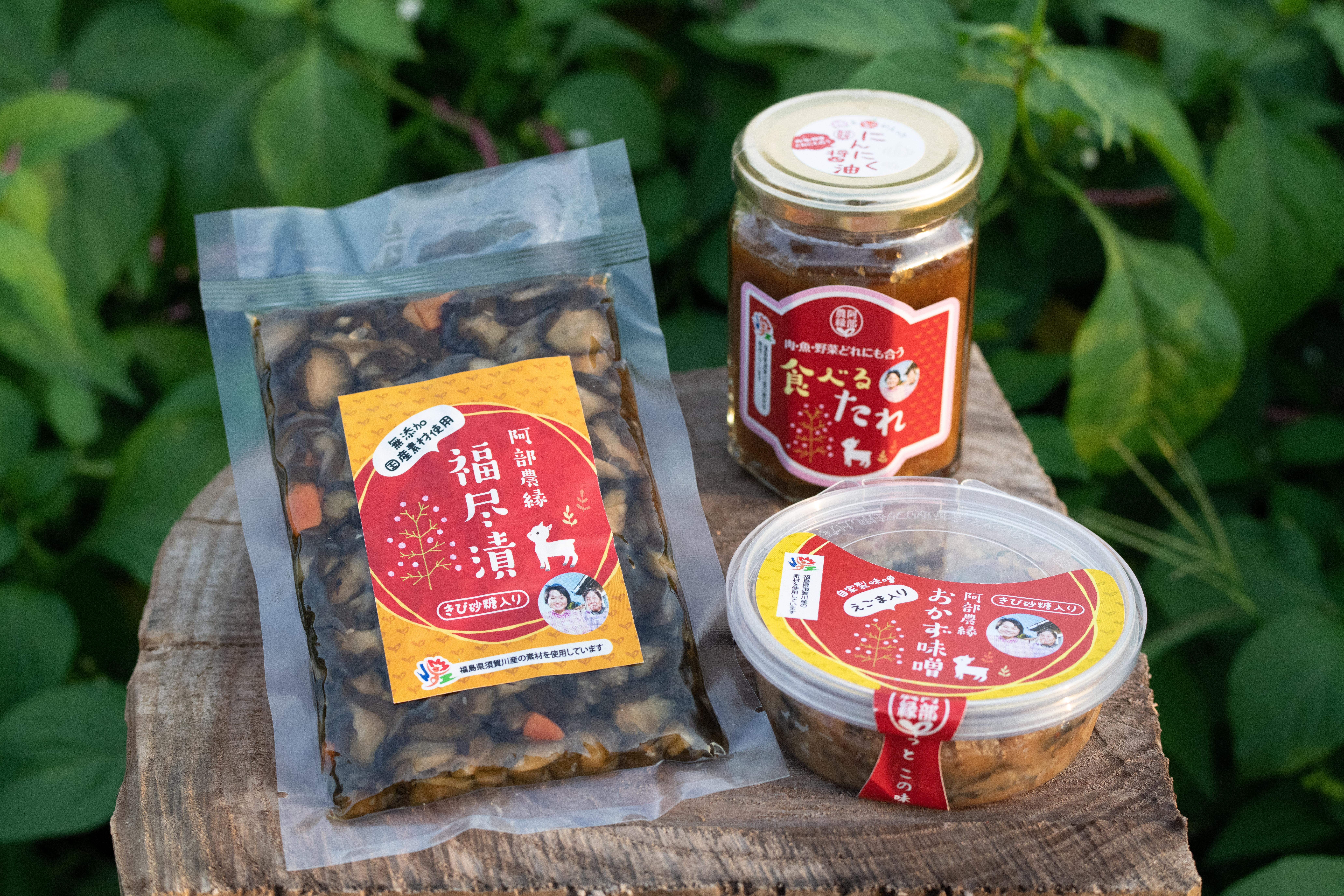 “母の味”シリーズは、農縁の母・阿部正子さんが作る、ずっと食べ続けたい家庭の味をベースにした調味料や漬物です。今回は数ある商品の中から、地域野菜をふんだんに使い、手を尽くし、福を尽くして作る福“尽”漬、自家製味噌と刻んだ大葉、鰹節やきび砂糖を混ぜ合わせた“旨み系”おかず味噌、かけるだけで素材を引き立て、ごちそうに変える食べるタレ、の3点をセットにしてお届けします。そのまま食べるのはもちろん、料理のアレンジや時短アイテムとしても活躍する心強い味方です!