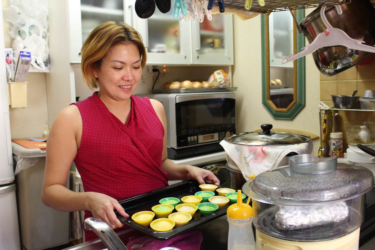 これはプートというフィリピンのデザートを作っているところです。