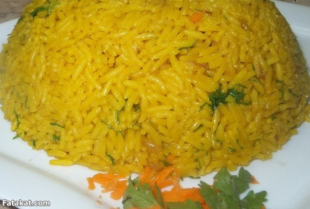 中東のスパイスで味付けした黄色いご飯です。お肉ととても相性がいいんです
