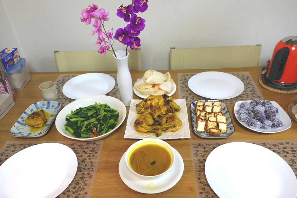 メインのチキンはもちろん副菜もとても美味しそう!!こちらがインドネシアのお祝い家庭料理、「アヤム・バカール」!!