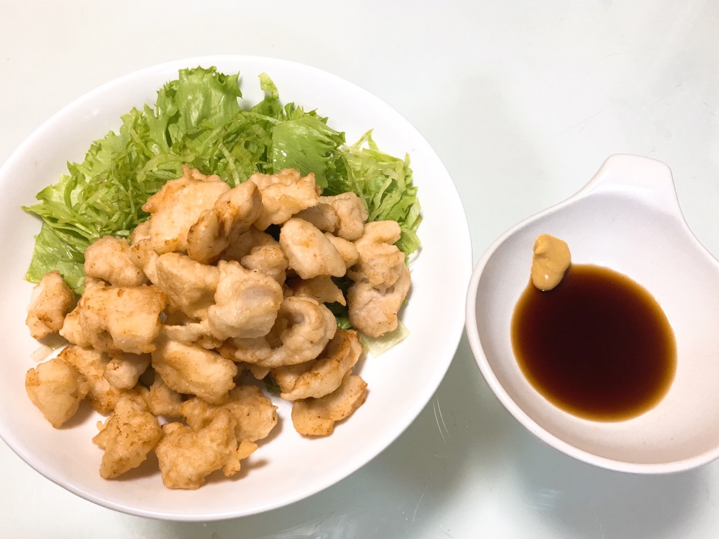 とり天の食べ方:ポン酢とカラシでいただきます。