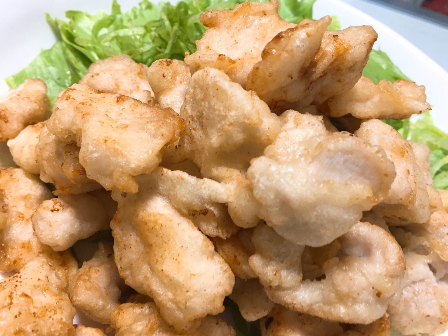 中はフワフワで外はカリカリ。これは冷めてもまた美味しい。 鶏肉の天ぷらなのでカラアゲとはまた一風違います。