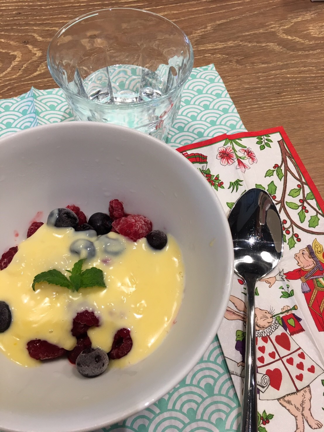 こちらはデザートの冷凍ベリーのホットカスタードかけ。カスタードも卵で自家製のものは本当に美味しいです(╹◡╹)