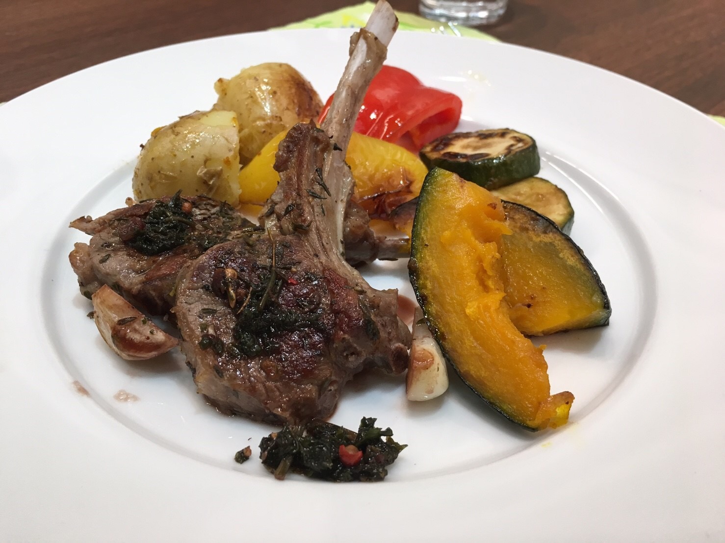 第3回目はラムチョップミントソースがけ、野菜のロースト、ラズベリートライフル。 いつもお手伝いしてくれりCちゃんはラムチョップ苦手と言っていたのに、美味しい!とラムチョップ2本をペロリ。ミントソースは大好評で、野菜にかけても美味しいと、皆さん喜んでくれました( ◠‿◠ ) 野菜のローストもお鍋で美味しいオリーブオイルで作りました。
