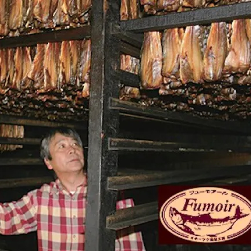 岩塩や酢などでしっかりと下味を付け、オホーツク地方の「ならの木」のおがくずを燃やして丁寧に手間暇かけて燻された極上の燻製です。フューモアールの燻製は、燻されたあの独特な香りと素材の風味が組み合わさってやさしくふわっと香ってきます。