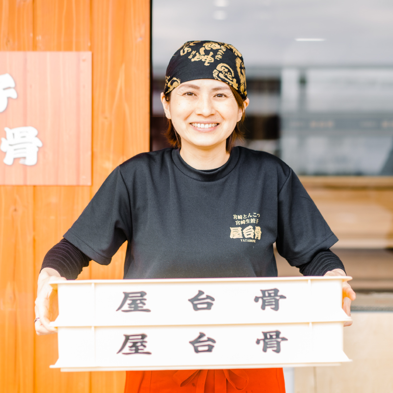 • 「本質を忘れず、徹底的にこだわり抜く。」という信念のもと、厳選した食材と熟練の技で仕上げたラーメンと餃子で人気を誇る「屋台骨」。専務取締役の渡辺愛香さんは、宮崎市ぎょうざ協議会の会長も務めています。