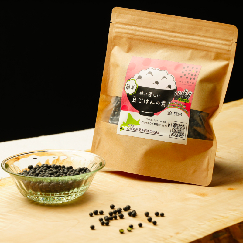 • 乙部町の黒千石大豆は、コロンとした小粒な見た目と、香ばしさとほのかな甘味が特徴。炒ってポリポリ、茹でてホクホクな食感が楽しめます。さらに、他の豆に比べると下処理の手間が少なく、大豆臭さがほとんどないことから、普段のお料理に取り入れやすい万能食材です。