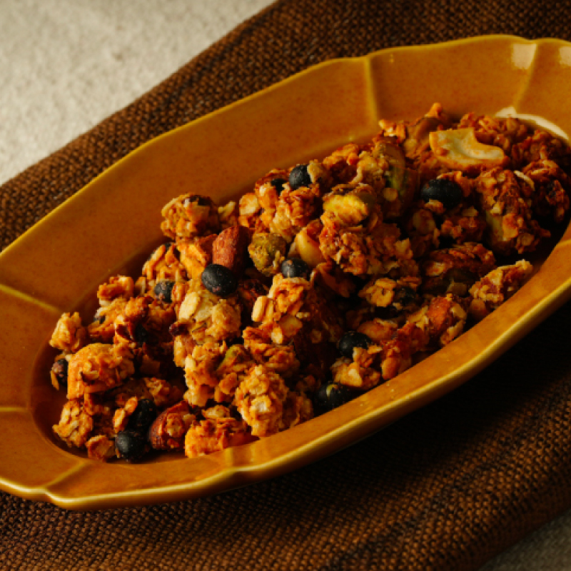• ポリポリ香ばしい食感がクセになる黒千石大豆とナッツ&ドライフルーツのグラノーラ。スイーツタイプはヨーグルトにトッピングしたり、おつまみタイプはお酒のアテにしたりと楽しみ方自在。小腹がすいた時にさっとつまめる、おうちに常備したくなるグラノーラです。