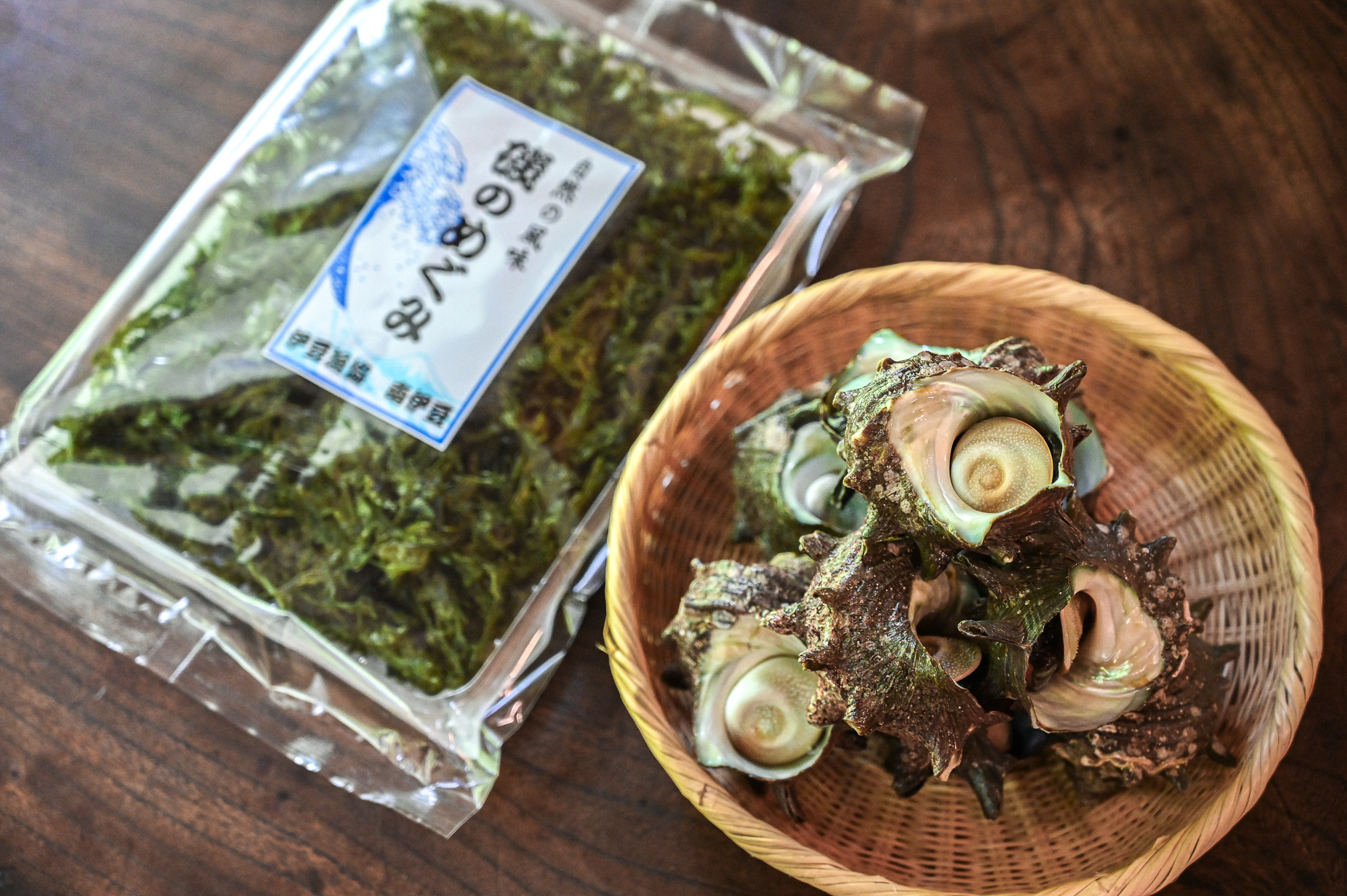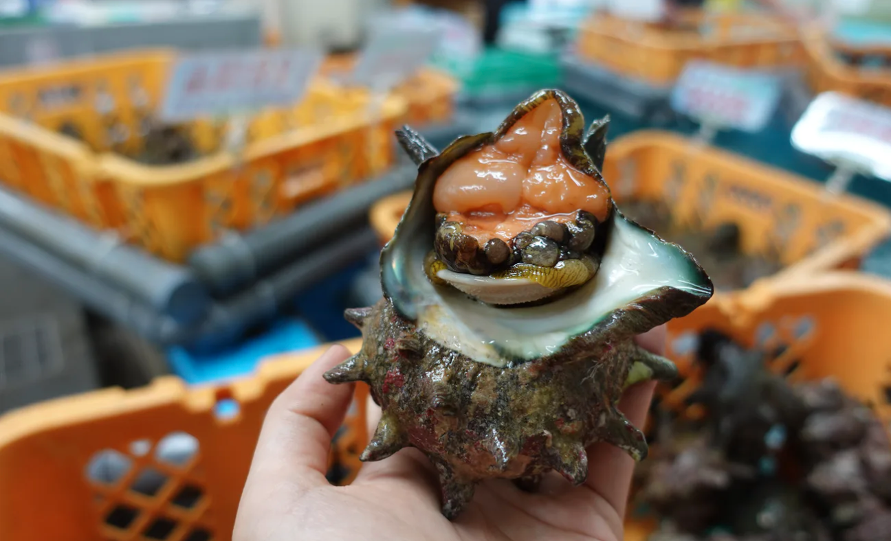 伊豆半島の栄養豊富な海藻を食べて育った、活サザエ