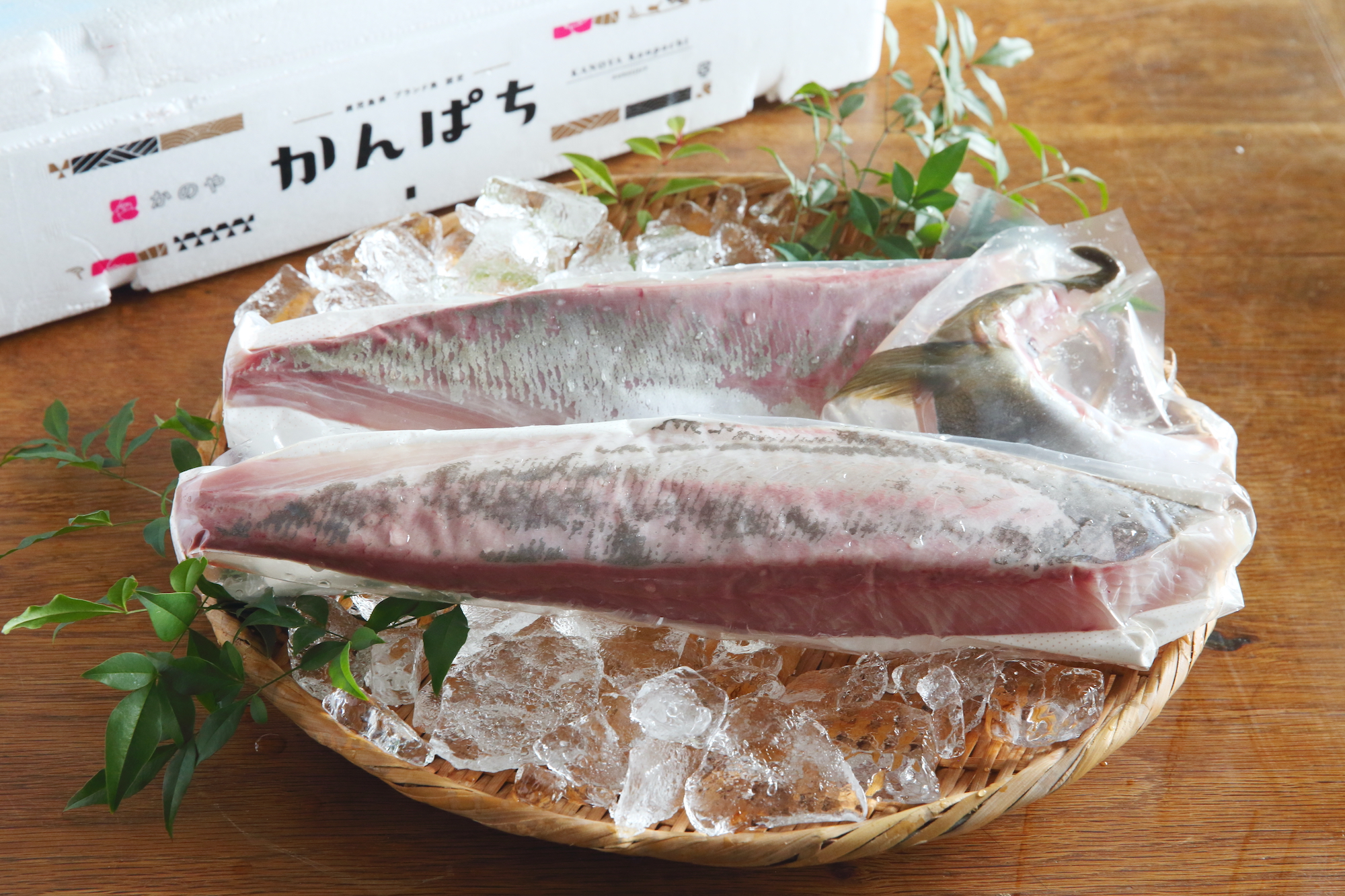 ・かのやカンパチ スキンレスロイン 腹側/背側×各1柵(+カマ1個入り) [700g]