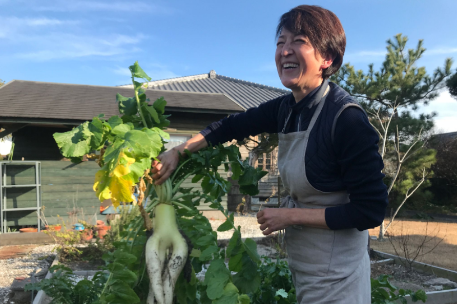 日本人の父とドイツ人の母の2つのルーツをもち、日本、ドイツ、アメリカで育つ。結婚後、ロンドンのコルドンブルーのグランディプロムを取得、長年東京で料理教室を主催。2020年にパートナーの出身である鹿屋市に移住し、自然に囲まれた豊かな暮らしを満喫中。